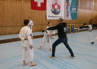 Zum Abschluss fand von 10.30 bis 13.30 Uhr ein Kata-Battle statt. Die Teilnehmenden präsentierten eine oder mehrere Katas, die bewertet und mit konstruktivem Feedback ergänzt wurden. Auch als Ecken- und Hauptrichter konnten wertvolle Erfahrungen gesammelt werden. Insgesamt war es ein gelungenes Event, von dem die Teilnehmenden in vielerlei Hinsicht profitieren konnten.
