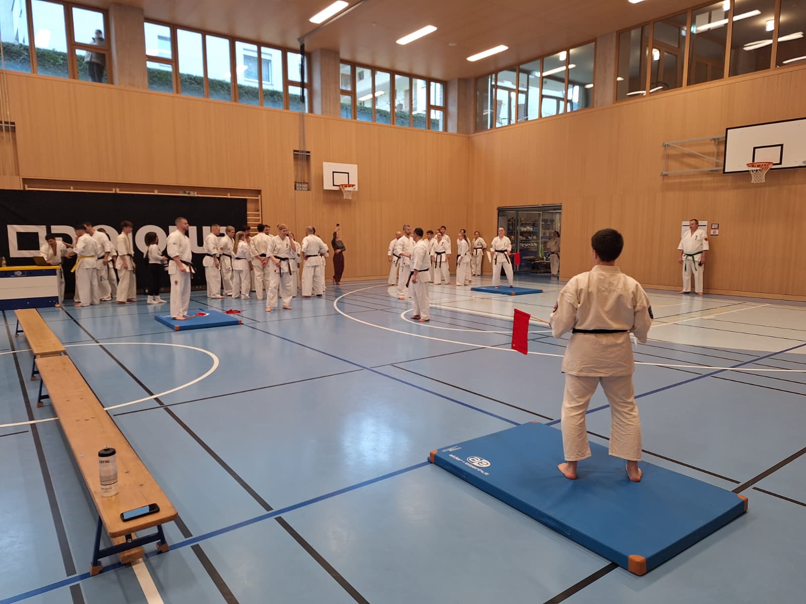 In der Sporthalle Burghalde in Baden fand das erste Swiss Kata Camp statt. Erich-Andreas Bürgisser war der einzige Teilnehmer aus den Reihen des Karate-Club Wohlen. Am Samstag wurden die rund 100 Teilnehmenden aus sechs Nationen begrüsst. Anschliessend wurden sie in Gruppen aufgeteilt. Je nach Wunsch konnten sie eine neue Kata lernen oder eine Kata der Grundschule festigen. Zu den Instruktoren gehörten An Polimeno, Carla Gallati, Ciril Bächli und Luigi Polimeno sowie die Weltmeister Ramon Pfändler und Simon Zurfluh.