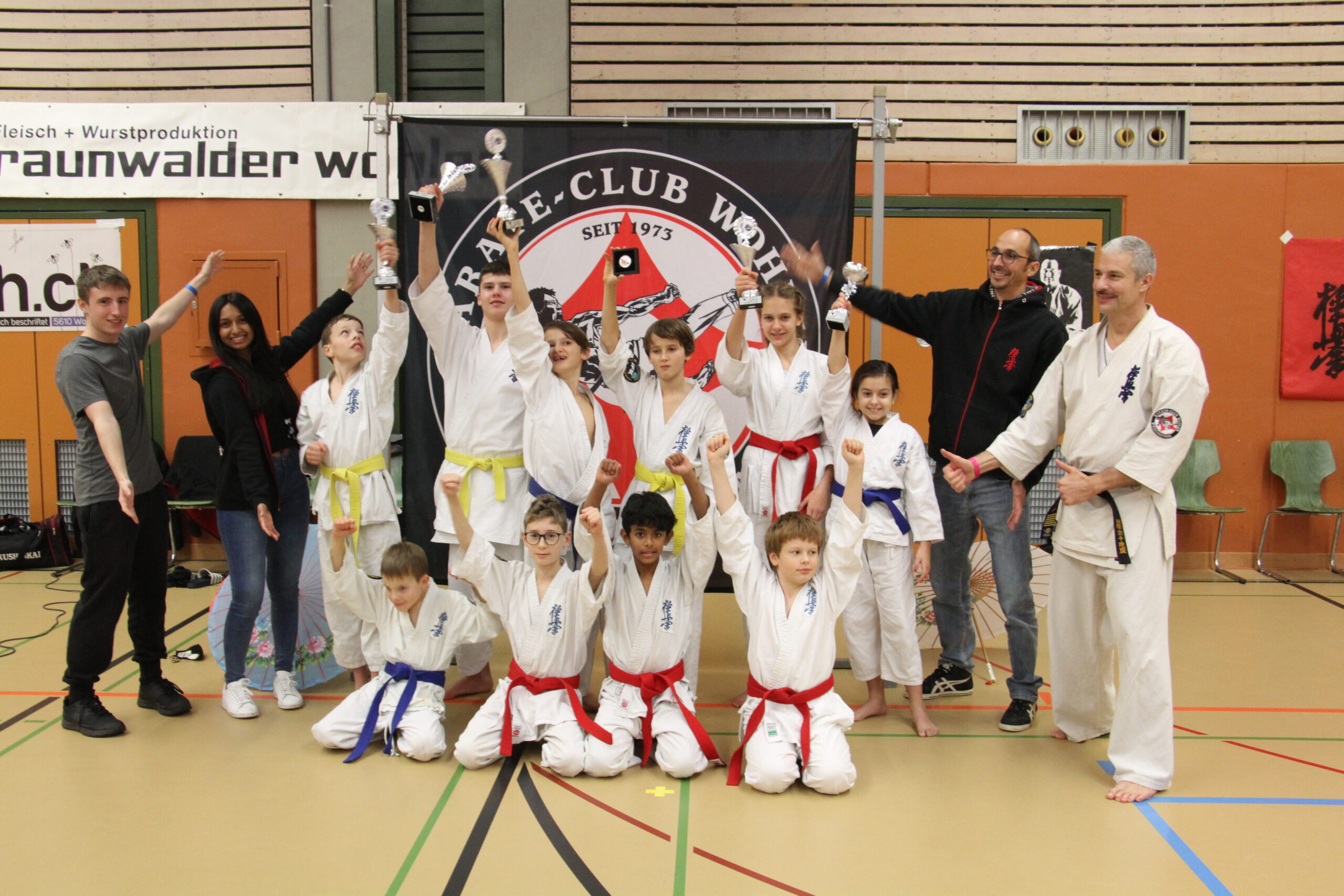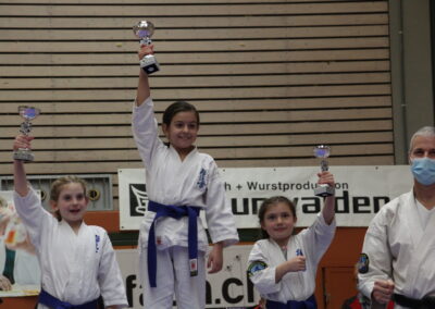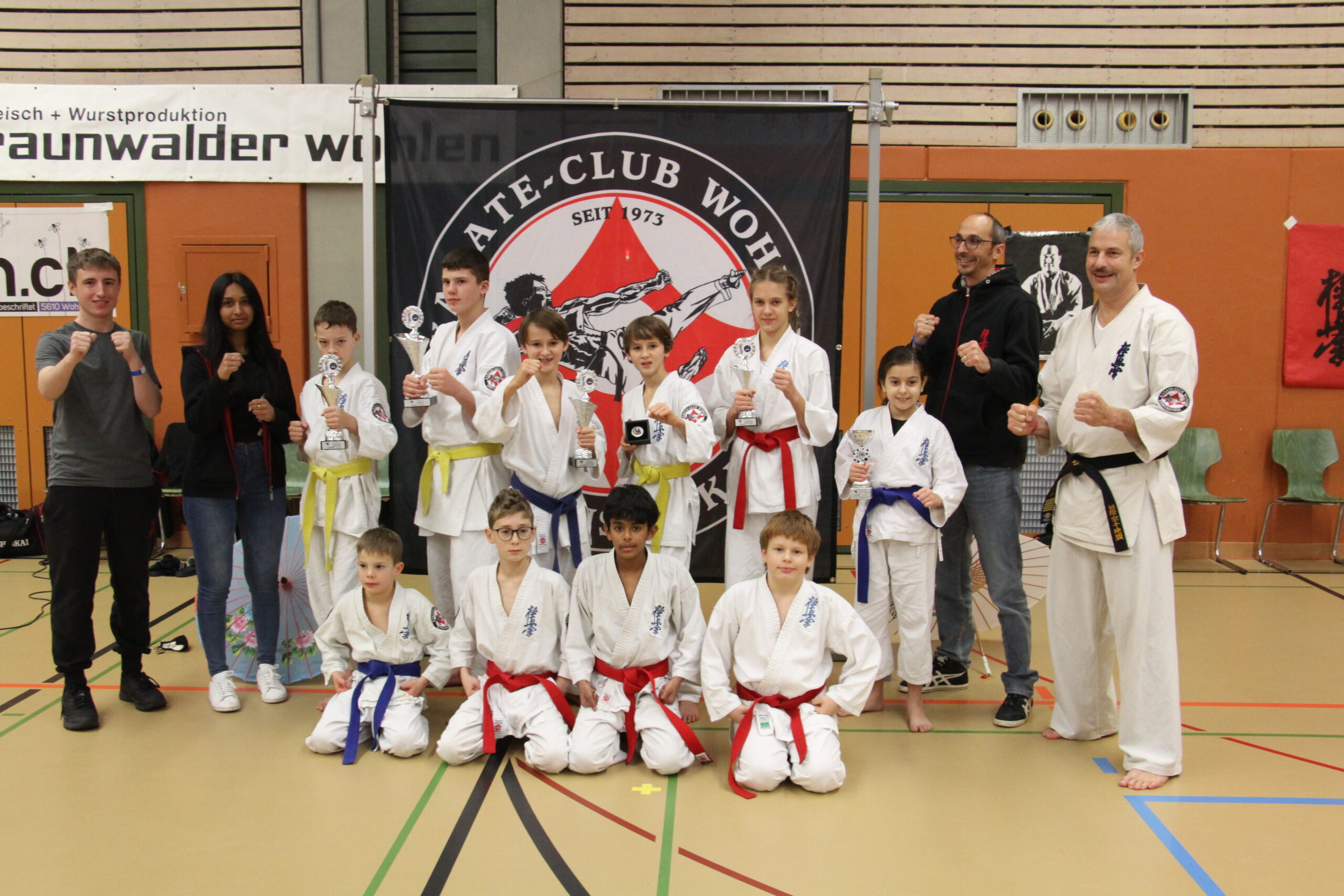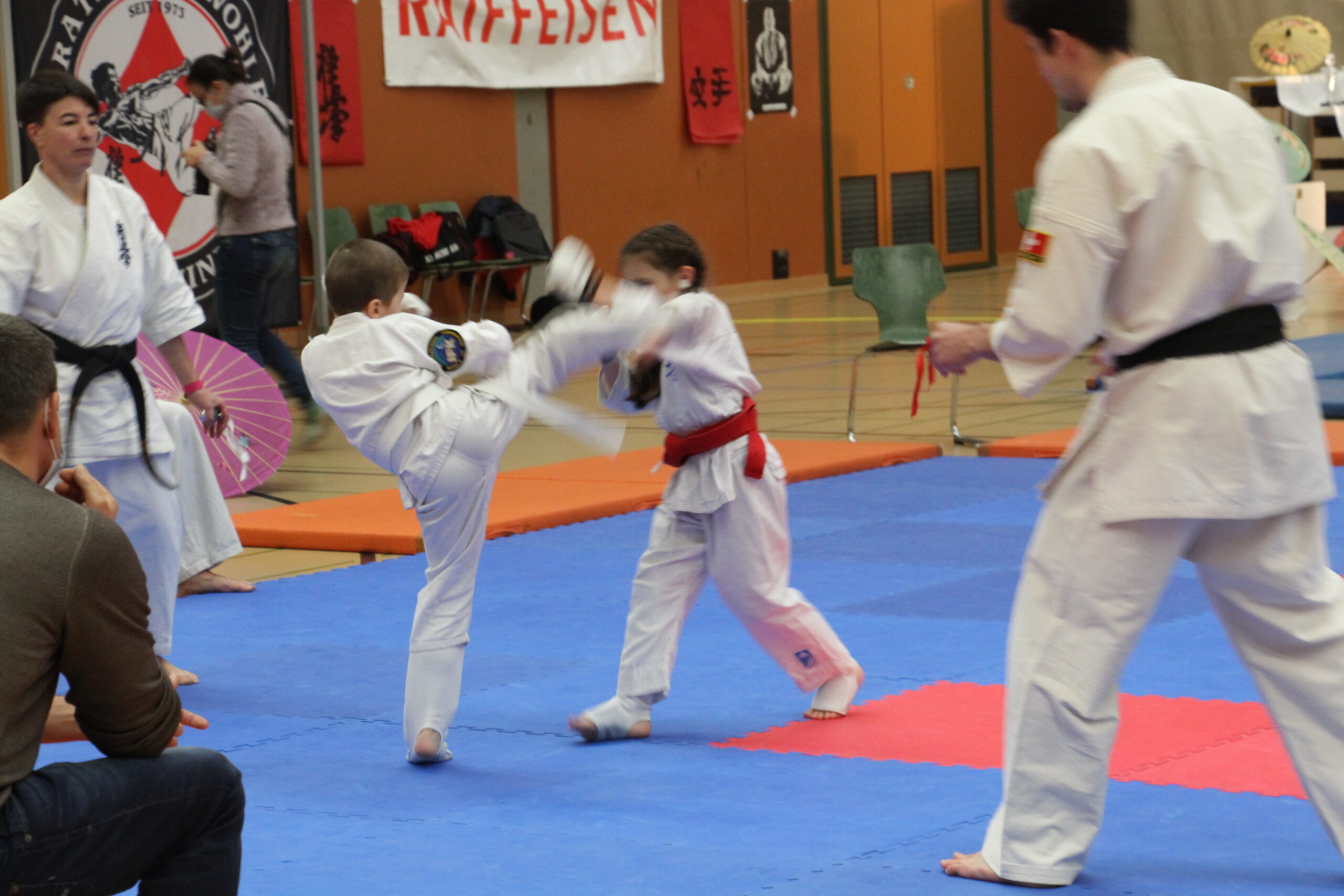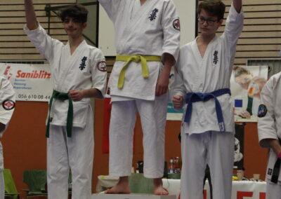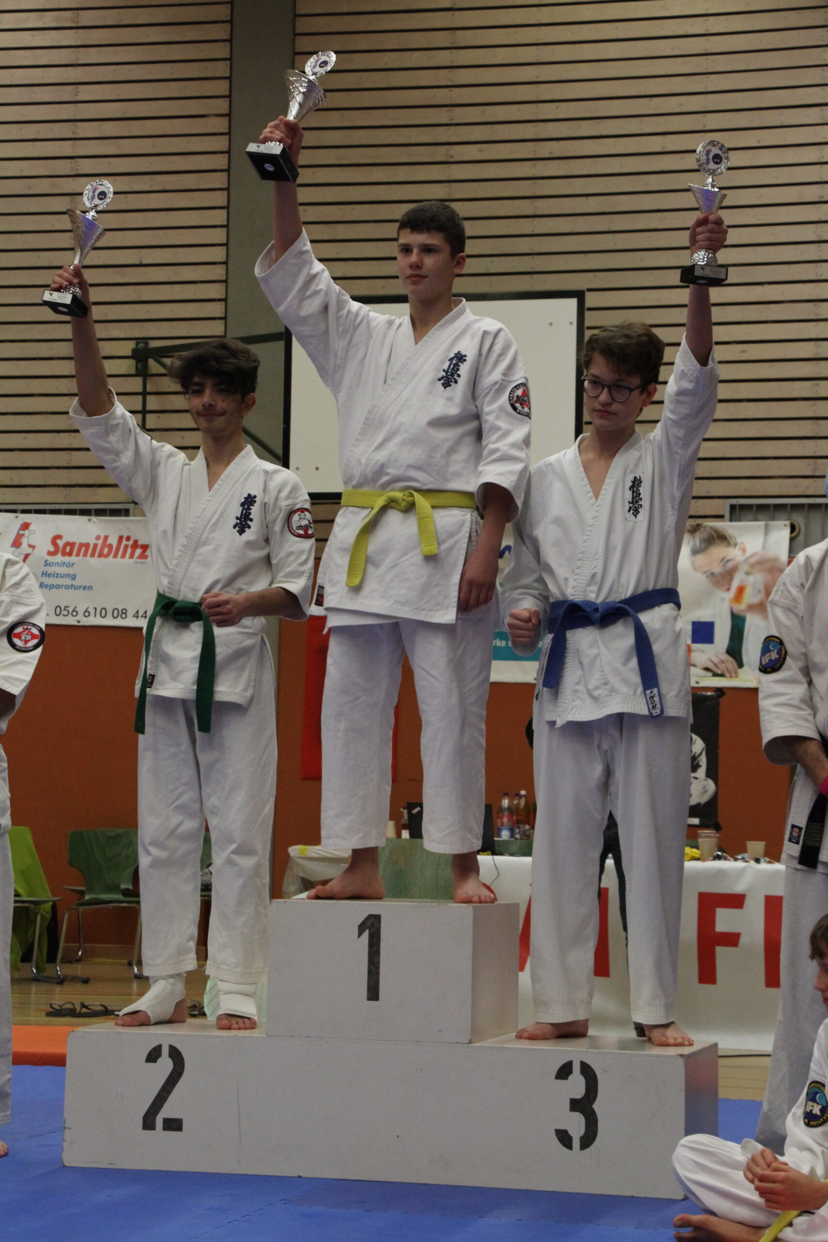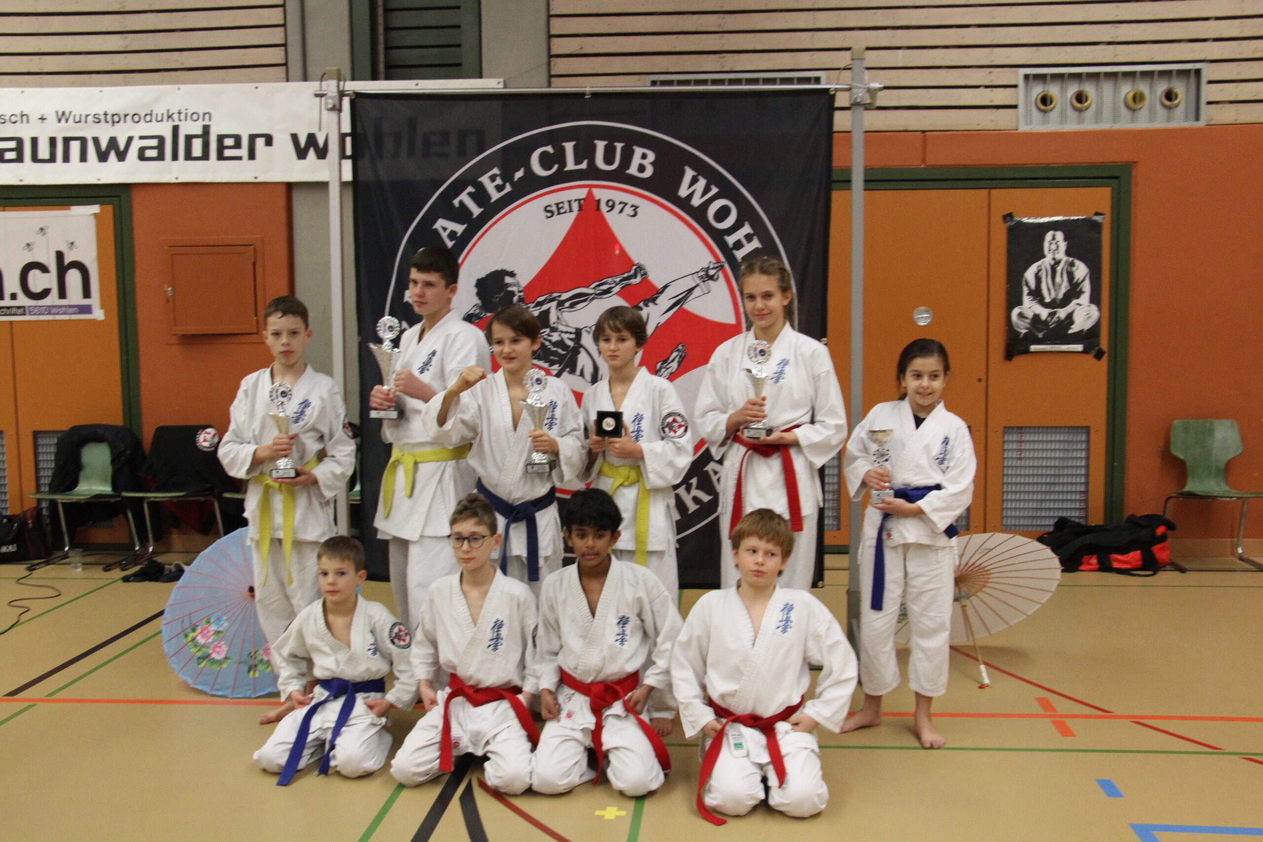 In der jüngsten Kategorie starteten die Karatekas, die unter zehn Jahren alt sind. Sie haben sich in den Disziplinen Kata (Formen) und Cliker (Kampf ohne Kontakt) gemessen. Aus den Ergebnissen der beiden Disziplinen ergab sich dann eine Gesamtrangliste. Für Thure Geissmann, Finn Schwenkfelder und Max Buchwalder vom Karate-Club Wohlen war es die erste Turnierteilnahme. Sie zeigten bei ihrem Debüt ansprechende bis sehr gute Leistungen. Geissmann beendete den Wettkampf auf dem 15. Rang. Buchwalder und Schwenkfelder sogar auf dem 5. beziehungsweise 6. Platz.