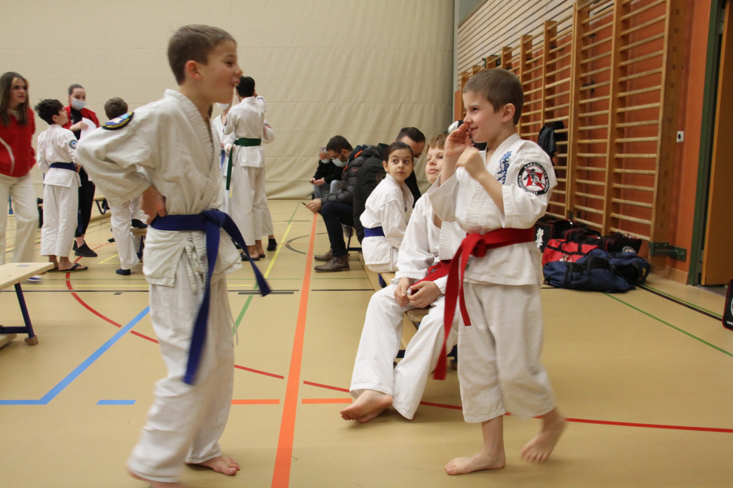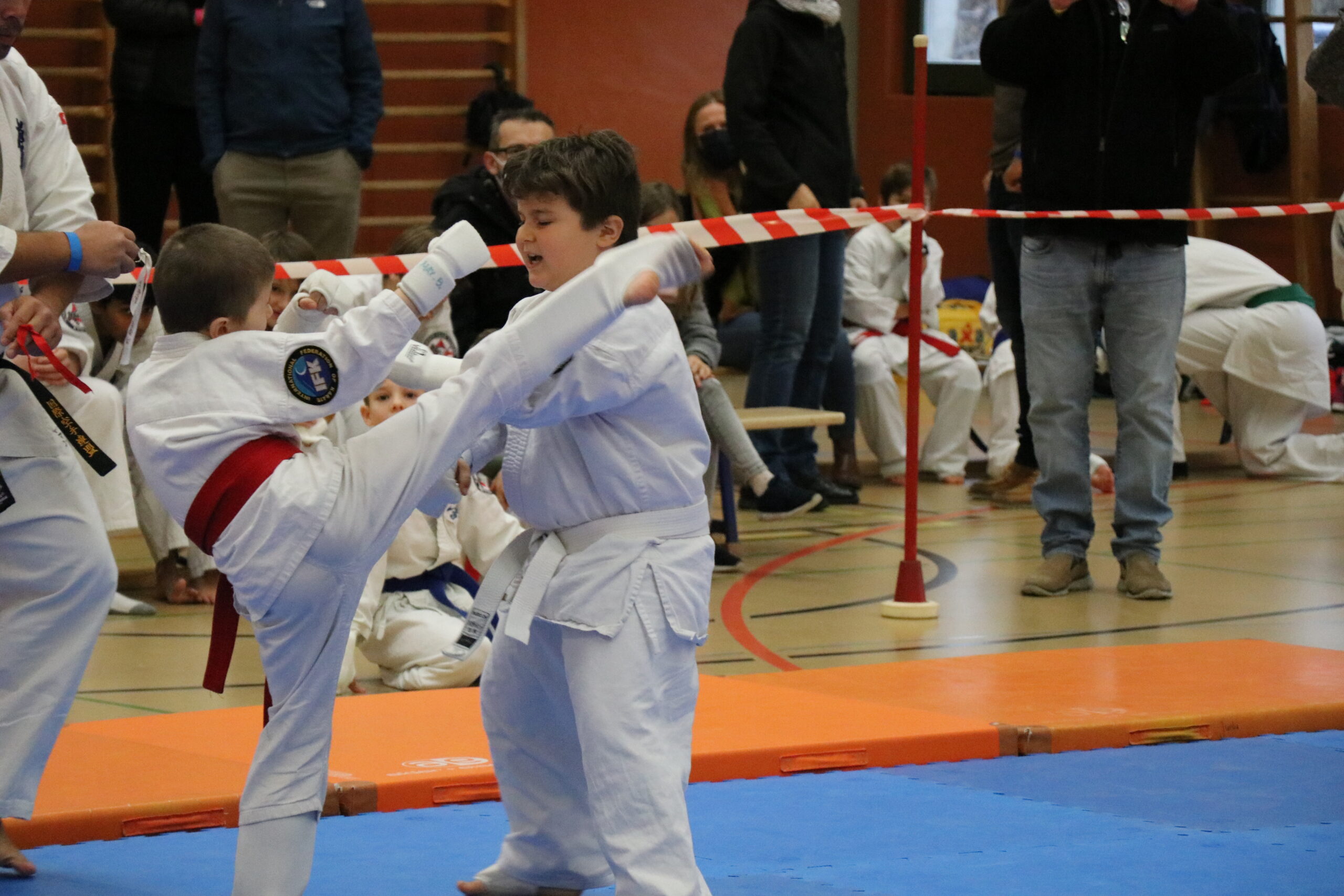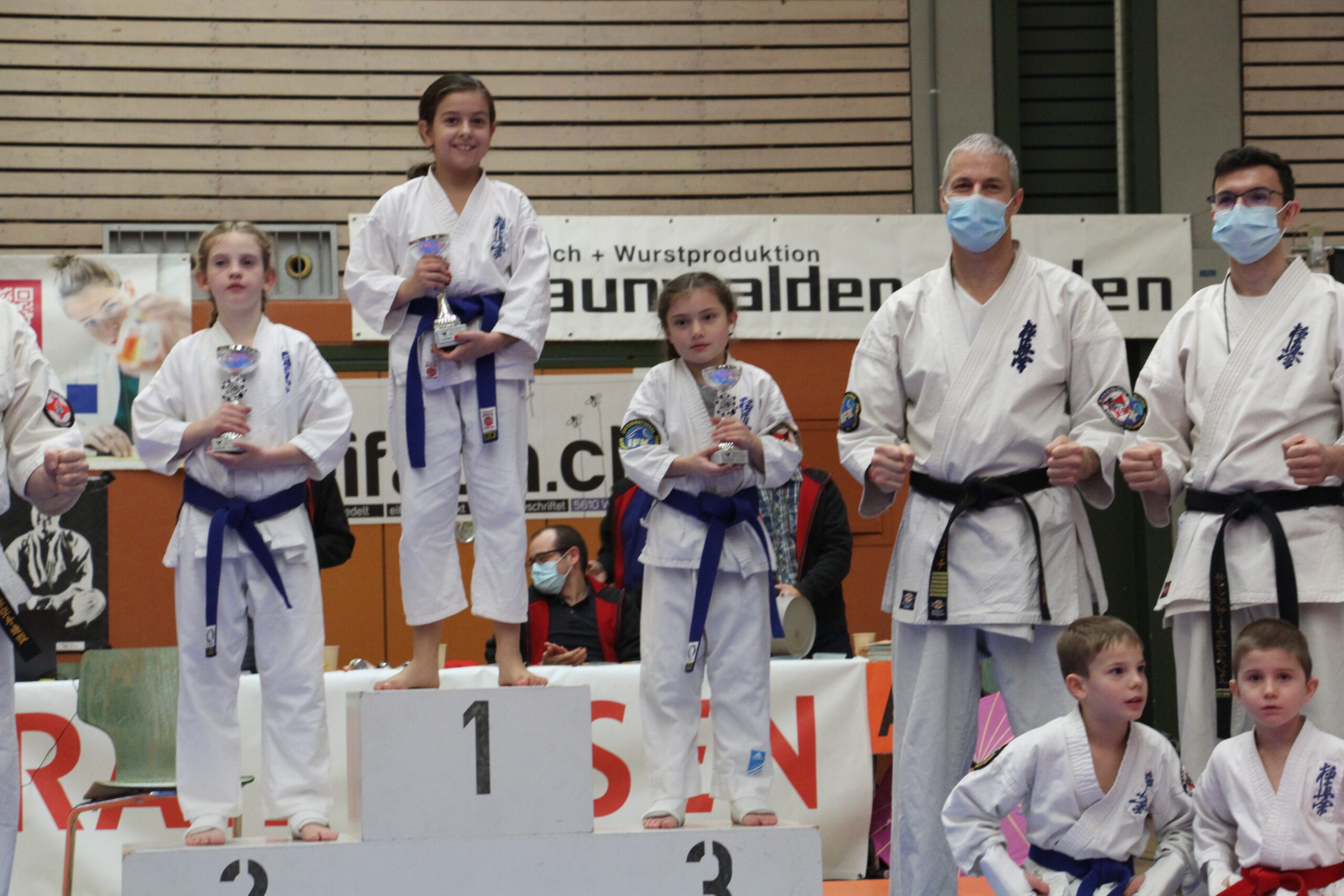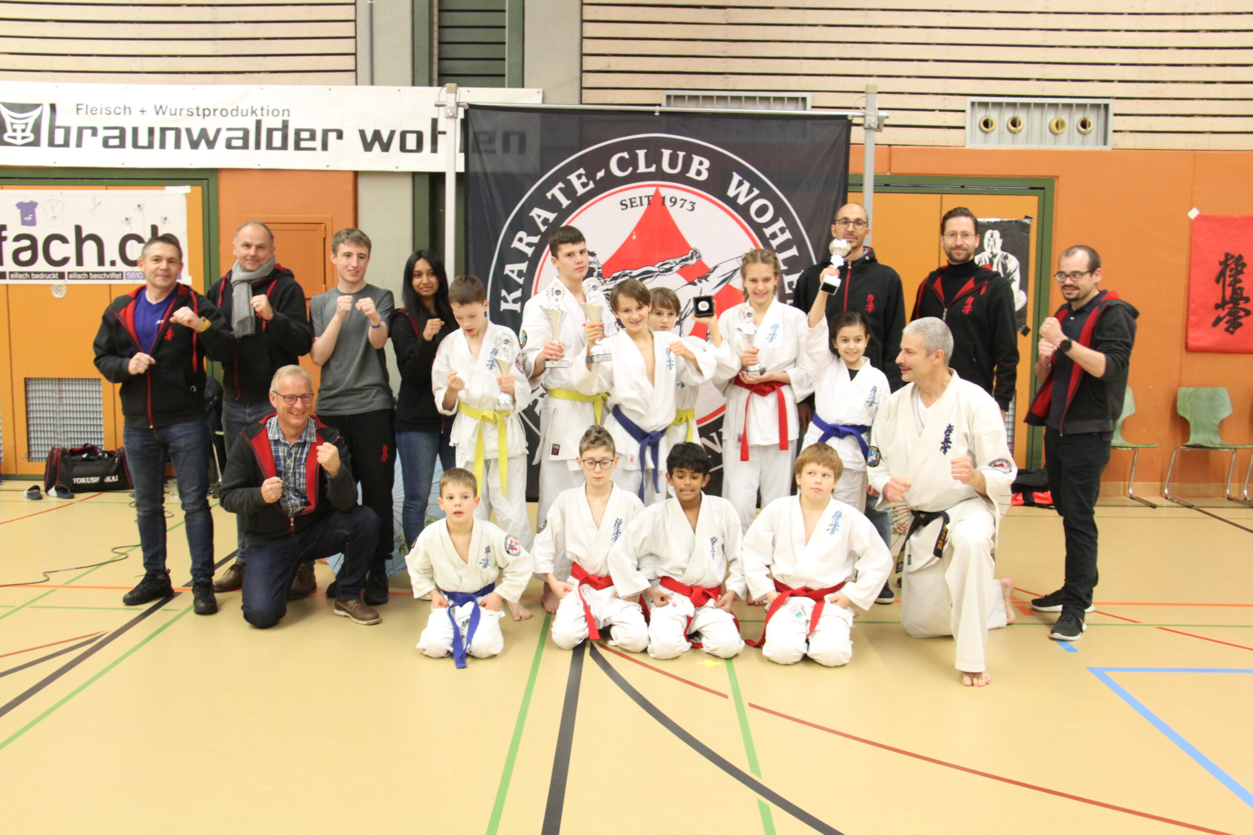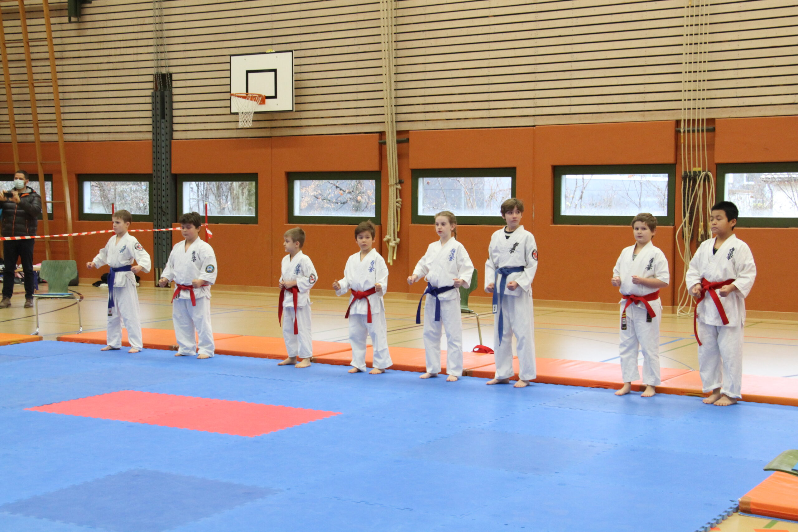 In der jüngsten Kategorie starteten die Karatekas, die unter zehn Jahren alt sind. Sie haben sich in den Disziplinen Kata (Formen) und Cliker (Kampf ohne Kontakt) gemessen. Aus den Ergebnissen der beiden Disziplinen ergab sich dann eine Gesamtrangliste. Für Thure Geissmann, Finn Schwenkfelder und Max Buchwalder vom Karate-Club Wohlen war es die erste Turnierteilnahme. Sie zeigten bei ihrem Debüt ansprechende bis sehr gute Leistungen. Geissmann beendete den Wettkampf auf dem 15. Rang. Buchwalder und Schwenkfelder sogar auf dem 5. beziehungsweise 6. Platz.