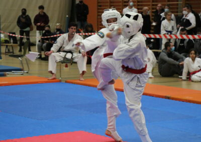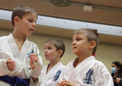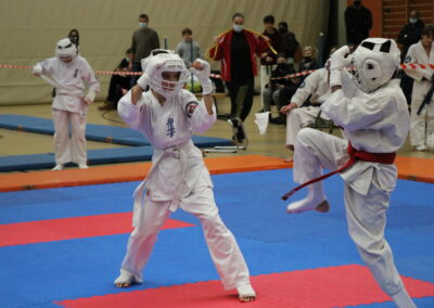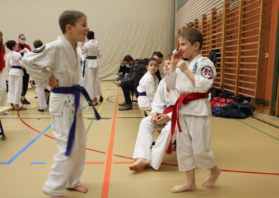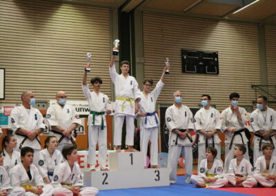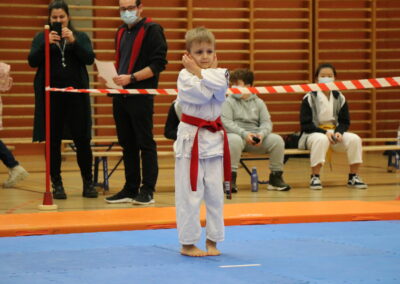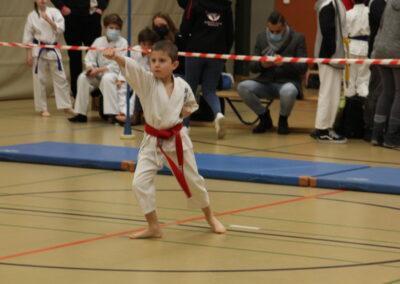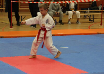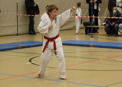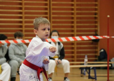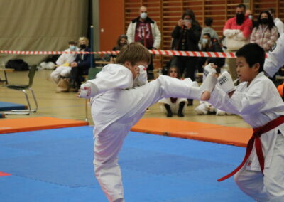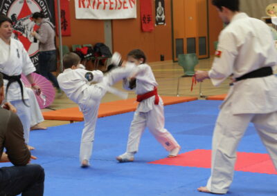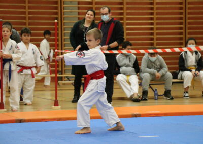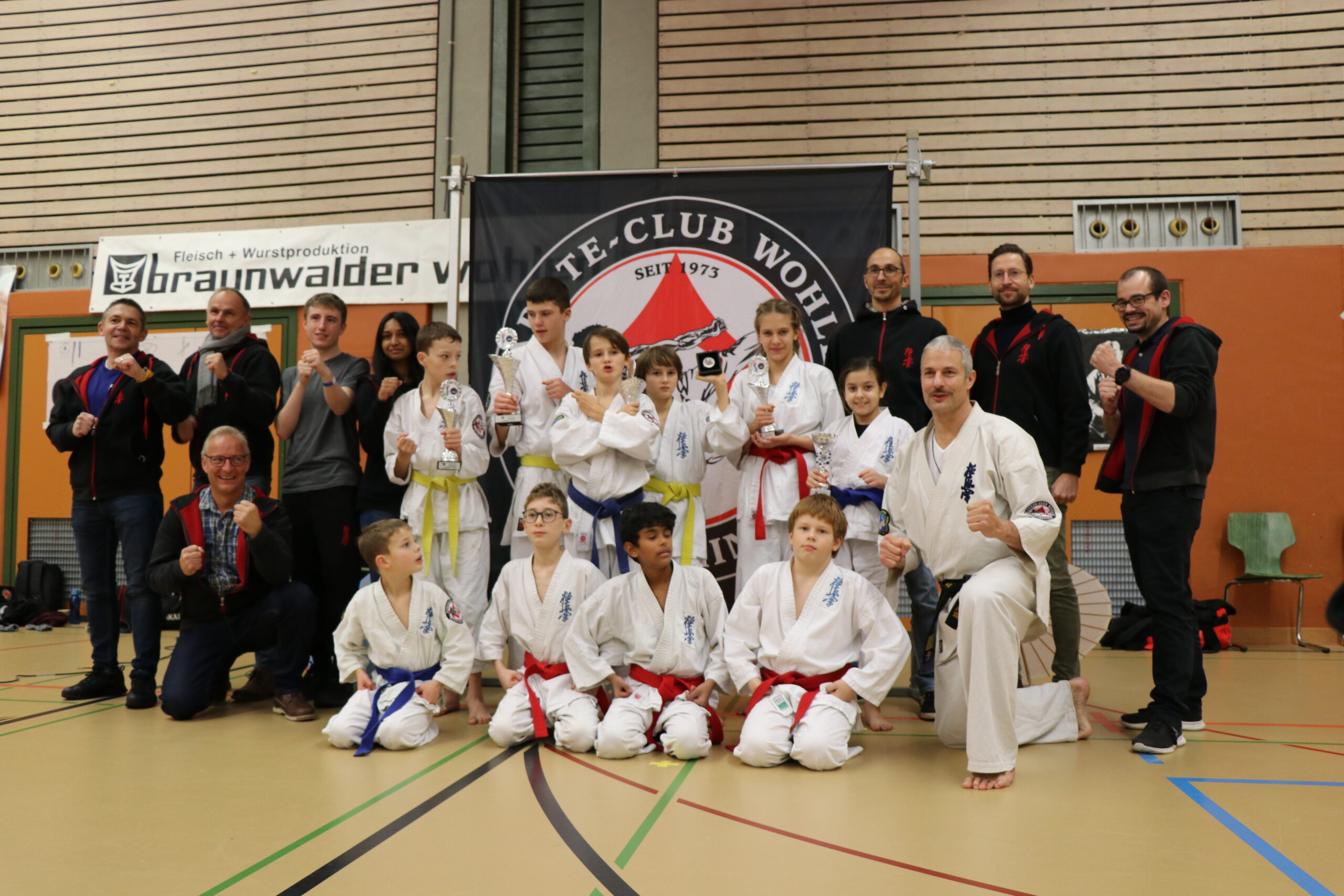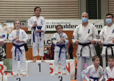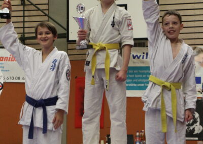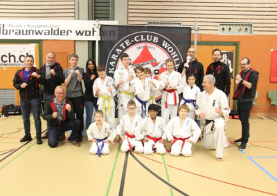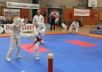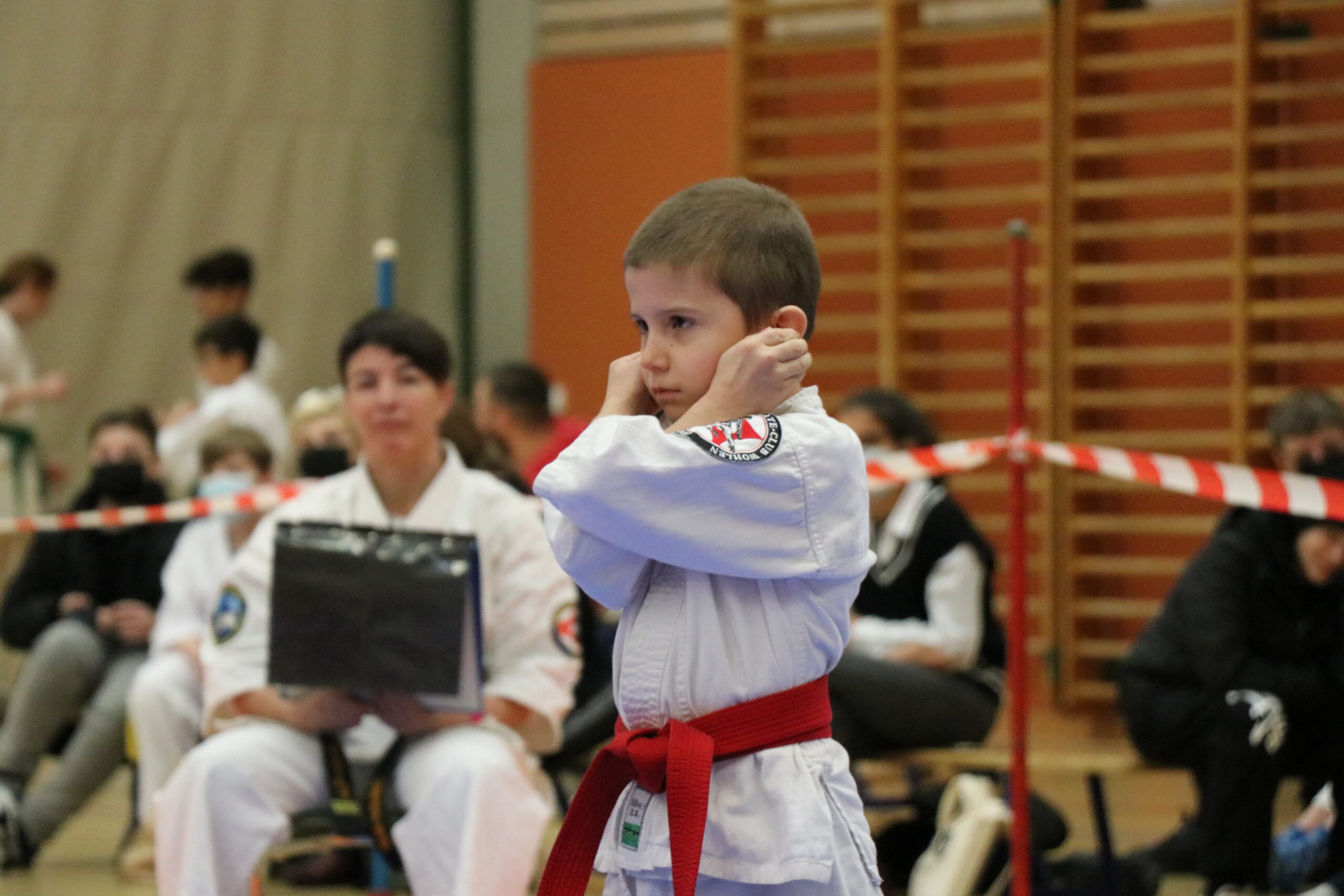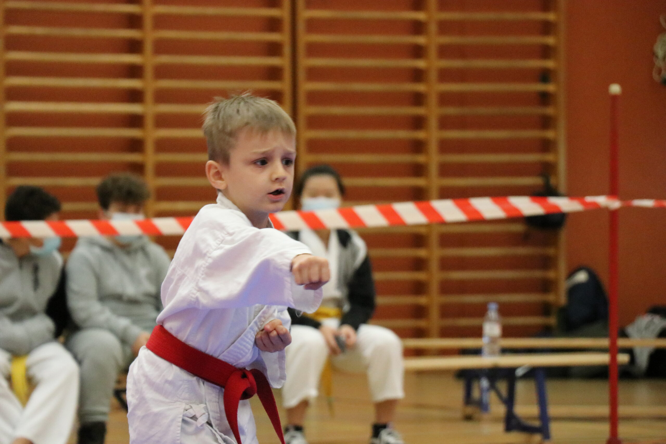 In der jüngsten Kategorie starteten die Karatekas, die unter zehn Jahren alt sind. Sie haben sich in den Disziplinen Kata (Formen) und Cliker (Kampf ohne Kontakt) gemessen. Aus den Ergebnissen der beiden Disziplinen ergab sich dann eine Gesamtrangliste. Für Thure Geissmann, Finn Schwenkfelder und Max Buchwalder vom Karate-Club Wohlen war es die erste Turnierteilnahme. Sie zeigten bei ihrem Debüt ansprechende bis sehr gute Leistungen. Geissmann beendete den Wettkampf auf dem 15. Rang. Buchwalder und Schwenkfelder sogar auf dem 5. beziehungsweise 6. Platz.