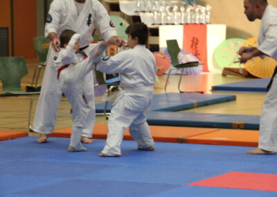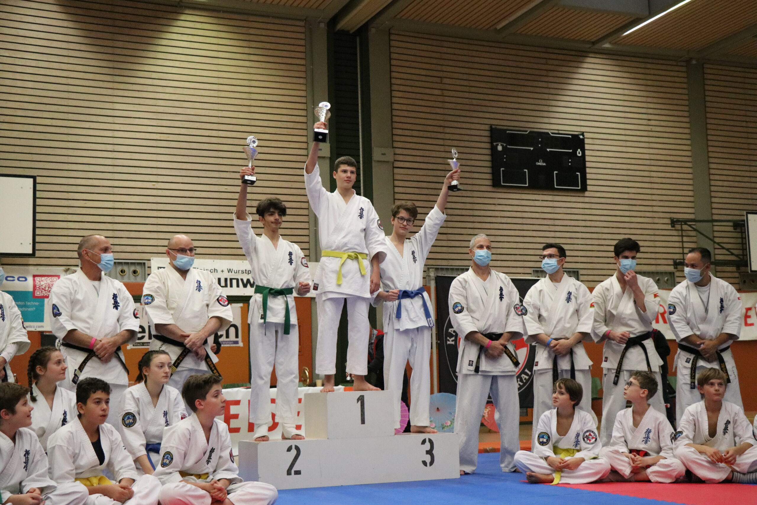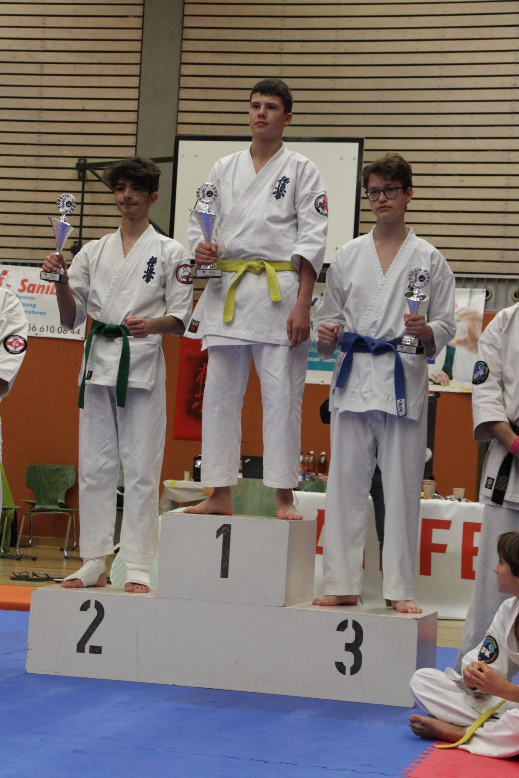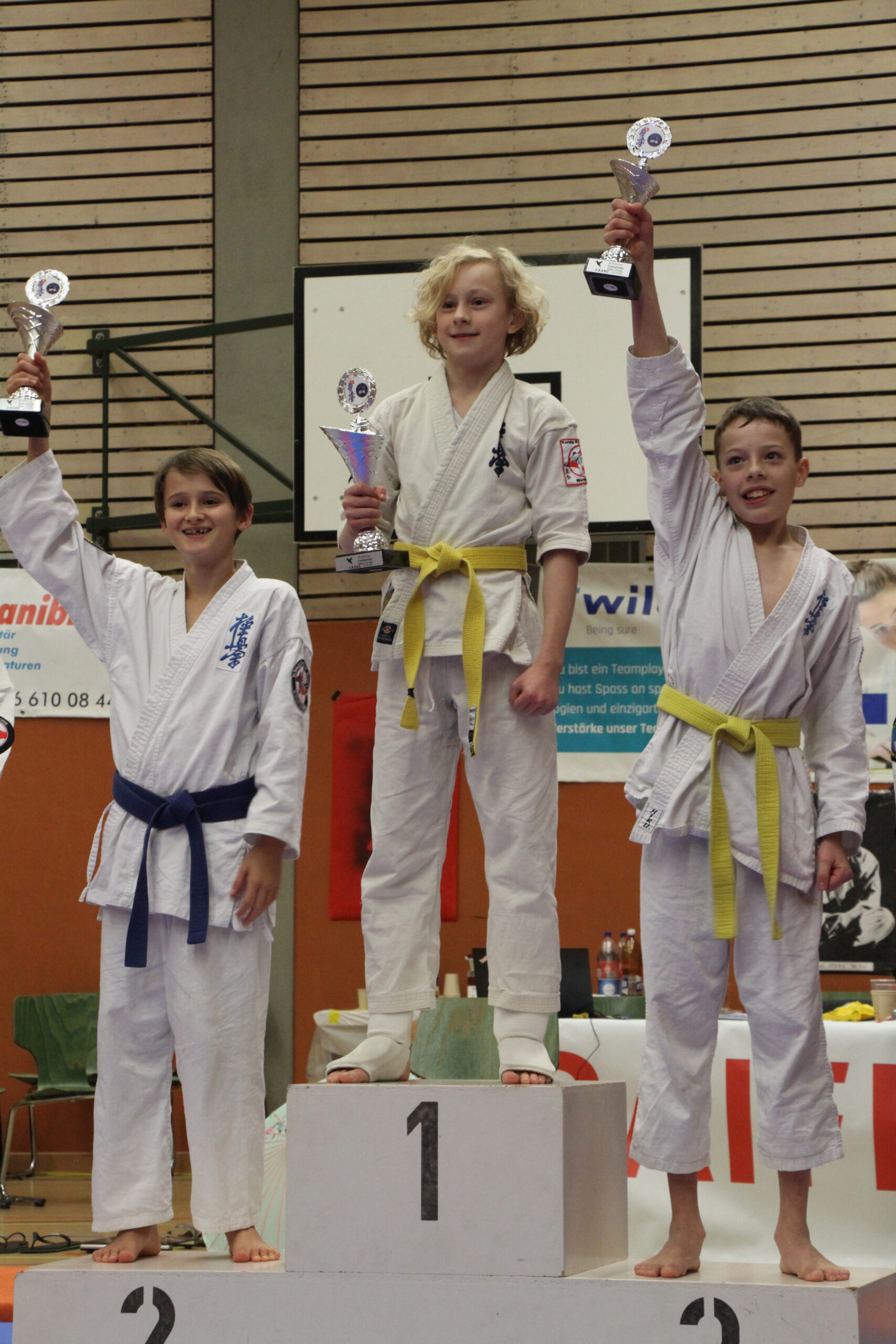 Dimitri Stäger hätte eigentlich in der Kategorie Kyokushin (Vollkontakt-Kampf) der Elfjährigen starten sollen. Da er der einzige Teilnehmer gewesen wäre, fiel diese Kategorie aus. In Absprache mit Trainern und Turnierverantwortlichen rückte er ins Teilnehmerfeld der 12- und 13-jährigen nach. Obwohl er deutlich der leichteste Kämpfer in dieser Kategorie war, konnte er sich auf dem 5. Rang platzieren. Auch Sanat Subramanian, der erst den 10. Kyu trägt, musste Lehrgeld zahlen. Er zeigte gute Leistungen, stand aber erfahreneren Karatekas gegenüber. Für ihn resultierte der 7. Rang.