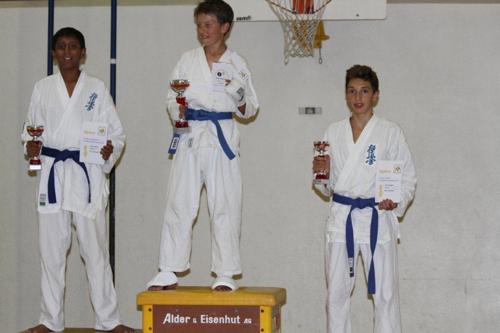 Im Rahmen der Jugendförderung konnte am 26. September 2012 in Sachseln ein Klickerturnier durchgeführt werden, bei dem lediglich Karatekas vom 10. bis 7. Kyu-Grad (Rot- und Blaugurte) und bis zum 15. Altersjahr starten durften. Nebst den Karate-Dojo Sarnen, Sachseln und Giswil durfte der Karate-Club Wohlen erstmals teilnehmen. Mit Sebastian Klutt, Raoul Keusch, Lukas Brändli und Abishek Veerasingam nahmen vier Freiämter Sportler teil, die sich sogleich auch gut in Szene zu setzen wussten. In einem Teilnehmerfeld von 26 Karate begeisterten Mädchen und Knaben gewannen alle Wohler Karatekas ihren Erstrundenkampf. Nebst Sebastian Klutt, der sich in seinen zweiten Kampf geschlagen geben musste, überstanden die verbleibenden drei Wohler ihre nächsten Runden, wobei sich Brändli im Kampf gegen seinen Dojo-Kollegen Keusch knapp geschlagen geben musste und sich auf dem guten 5. Schlussrang platzieren konnte. Keusch blieb der Finaleinzug knapp verwehrt, setzte sich dann aber in der Hoffnungsrunde souverän durch und gewann den kleinen Final, womit er den erfreulichen dritten Podestrang feiern durfte. Veerasingam gewann alle seine Kämpfe und stiess bis in den Final vor, wo er sich aber knapp geschlagen geben musste. Trotzdem durfte er sich über den Gewinn des zweiten Ranges freuen, womit die gute Wohler-Bilanz an diesem kleinen Turnier sehr erfreulich ausfiel.
