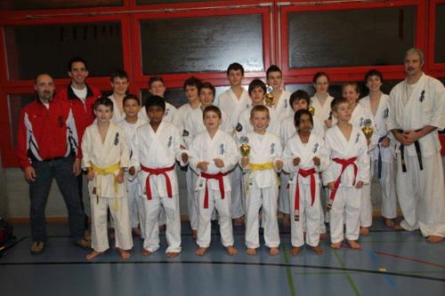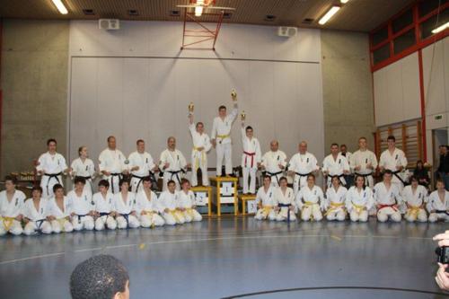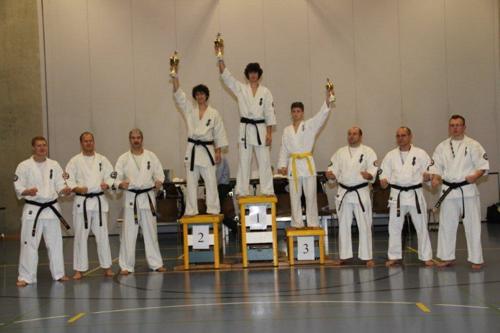 Die Kategorie gross war mit Dimitrios Sarantidis, Lukas Brändli, Trim Hasanaj, Jenny Hofer, Raoul Keusch, Jan Lukas Lehmann, LK, Jonas Strebel und Matthew Minning voll in Wohler Hand. Jan Lukas konnte als Turnierneuling wertvolle Erfahrungen sammeln. Er belegte den 18. Schlussrang. Leider waren im Kumite fast alle Wohler in der gleichen Tableauhälfte und somit wurden viele Kämpfe unter Wohlen ausgeführt. Dies beeinträchtigte zwar keinerlei die Spannung, aber leider hiess es auch gleichzeitig ein Aus für einen Club Kameraden. Somit war es auch nicht erstaunlich, dass die Plätze 9 bis 5 von Dimitrios, LK, Lukas, Trim und Matthew belegt wurden. In seinem ersten Turnier erreichte Jonas nach einer guten Leistung im Bereich Kata und dem Einzug in den Kumitefinal den 3. Platz in der Endabrechnung. Als einziges wohler Mädchen in dieser Kategorie zeigte Jenny eine hervorragende Leistung und wurde erst im Halbfinal durch Jonas gestoppt. In der Schlussabrechnung verbesserte sie sich um einen Platz und holte knapp vor Jonas Silber.